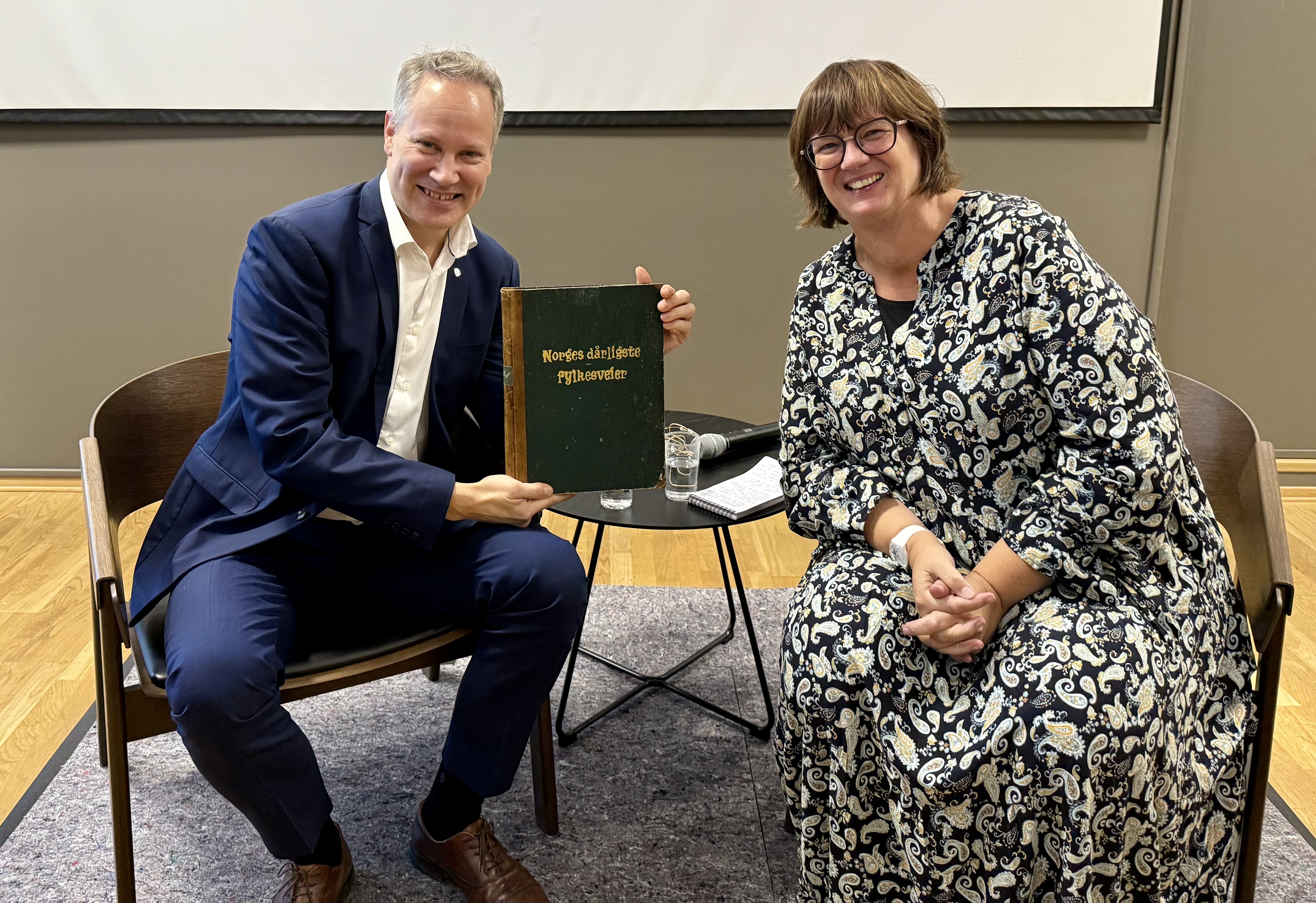 Overrekkelse av boken Historien om Norges dårligste fylkesveier